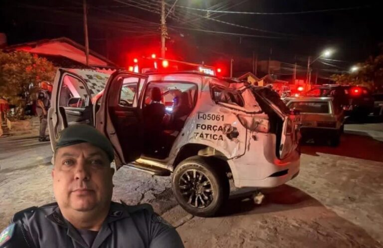 Um policial militar morreu e outros dois ficaram feridos após uma viatura da Polícia Militar capotar durante uma perseguição na...