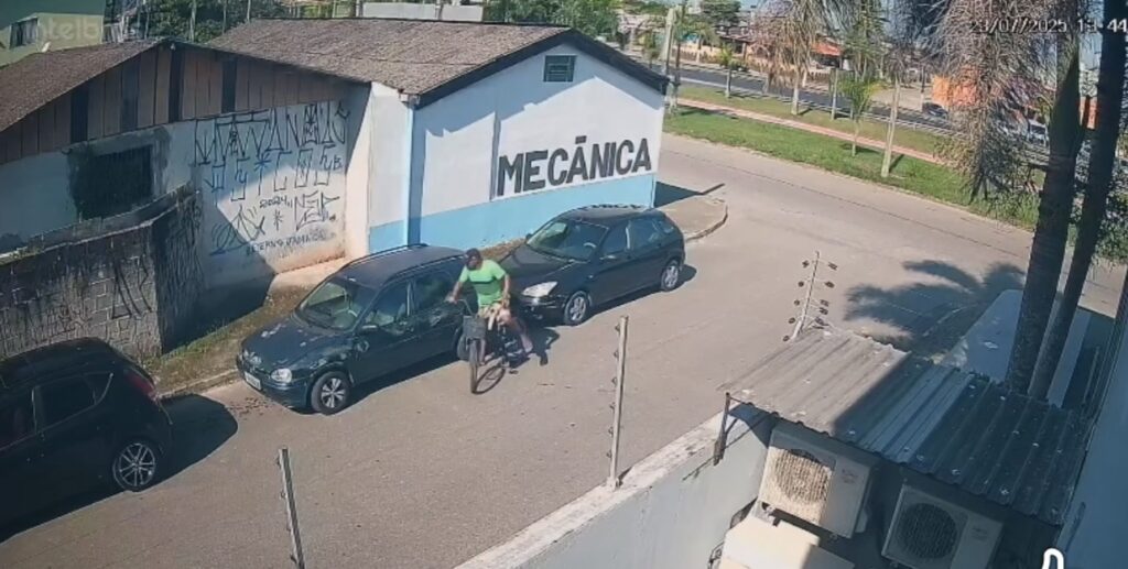 Após o crime, o suspeito fugiu de bicicleta. As imagens já foram entregues à Polícia Civil, que investiga o caso. Um boletim de ocorrência foi registrado.