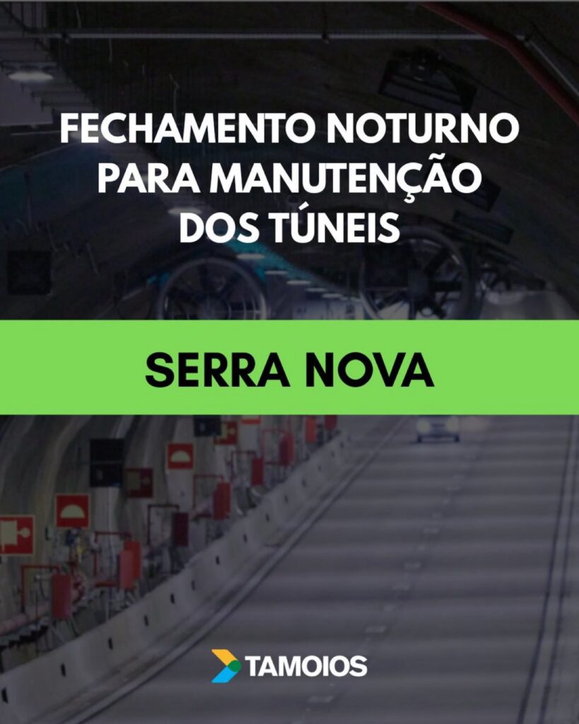A Concessionária Tamoios realiza, entre segunda-feira (14) e quinta-feira (17), o fechamento noturno dos túneis da Serra Nova para serviços de manutenção. As interdições ocorrem das 22h às 6h do dia seguinte.