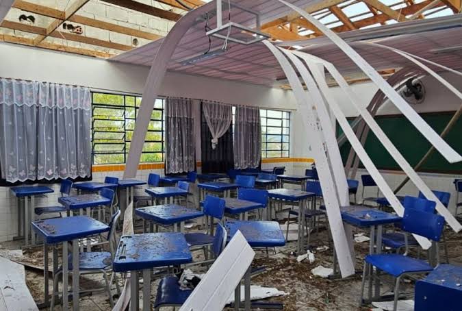 Ocorrências de quedas de árvores, curto circuito em fiações elétrica, queda de energia em diversos bairros e estruturas danificadas em comércios e prédios públicos. Telhado de escolas em Ubatuba e Caraguatatuba ficaram retorcidos, como na Escola João Baptista Gardelin. Na parte da tarde, as aulas foram suspensas em toda rede municipal de ensino de Caraguatatuba. E continuarão suspensas nesta terça-feira.