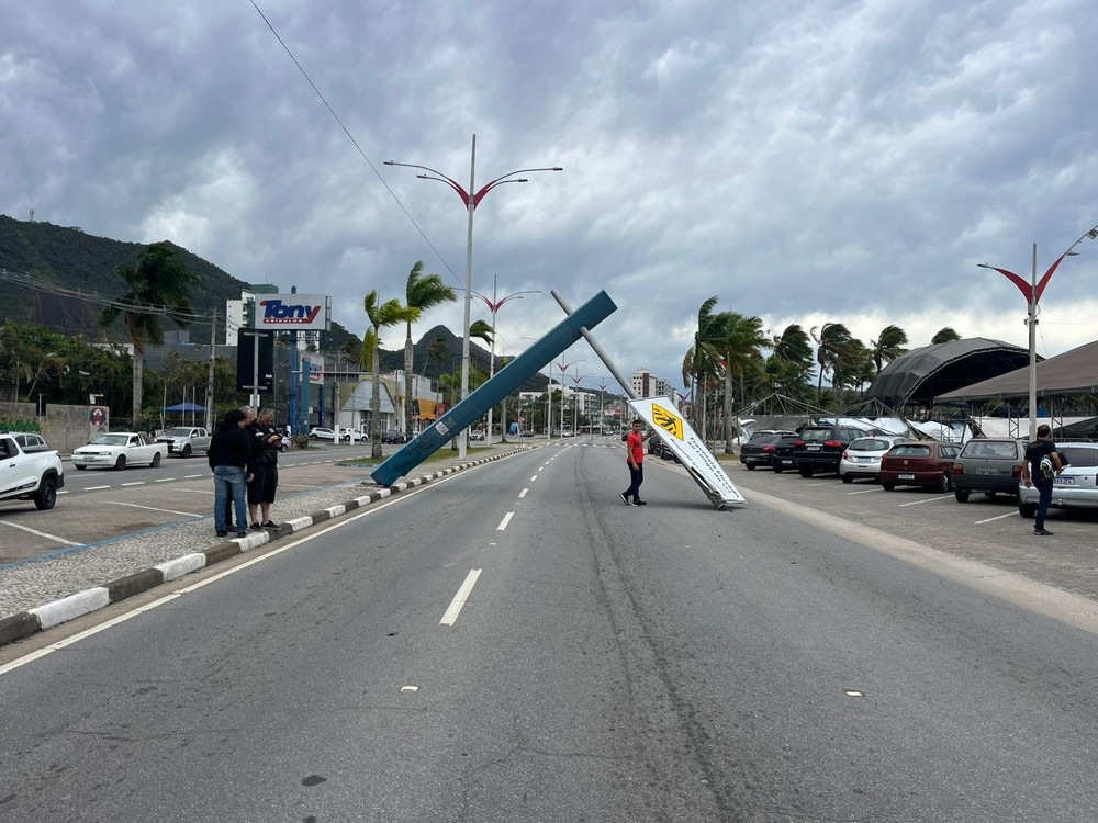O vídeo que mostra mesas de plástico sendo arrastadas pelo vento até o mar foi feito na Praia da Cocanha. Nas imagens, é possível ver até uma das mesas ‘voando’ enquanto outras já aparecem nas águas.